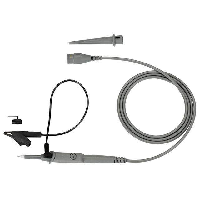 περιλαμβάνει Adapter, Sprung Hook, Tip Λεπτομερής περιγραφή 10:1 Passive 250MHz 48.000" (1219.20mm) Gray Oscilloscope Probe Test Lead CAT II 1000V, CAT III 600V