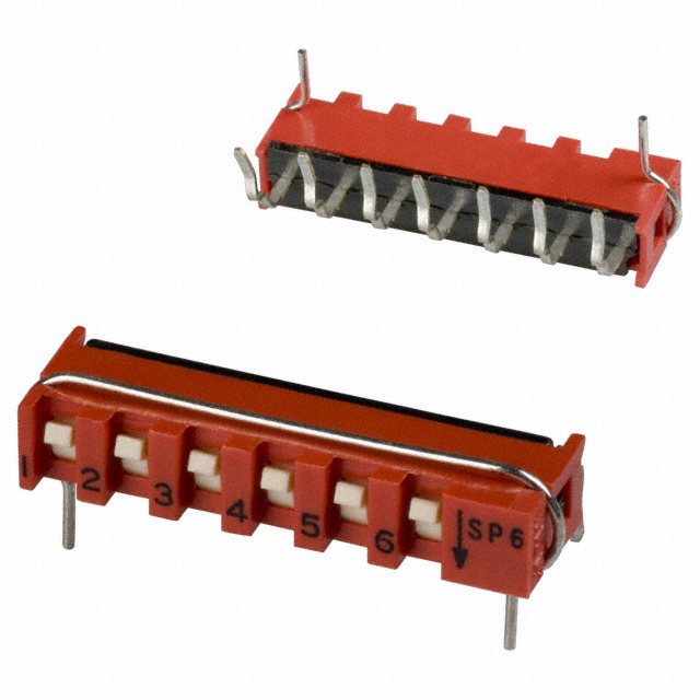 ηλεκτρική ζωή 1,000 Cycles Λεπτομερής περιγραφή Dip Switch SPST 6 Position Through Hole, Right Angle Slide (Standard) Actuator 10mA 20VDC