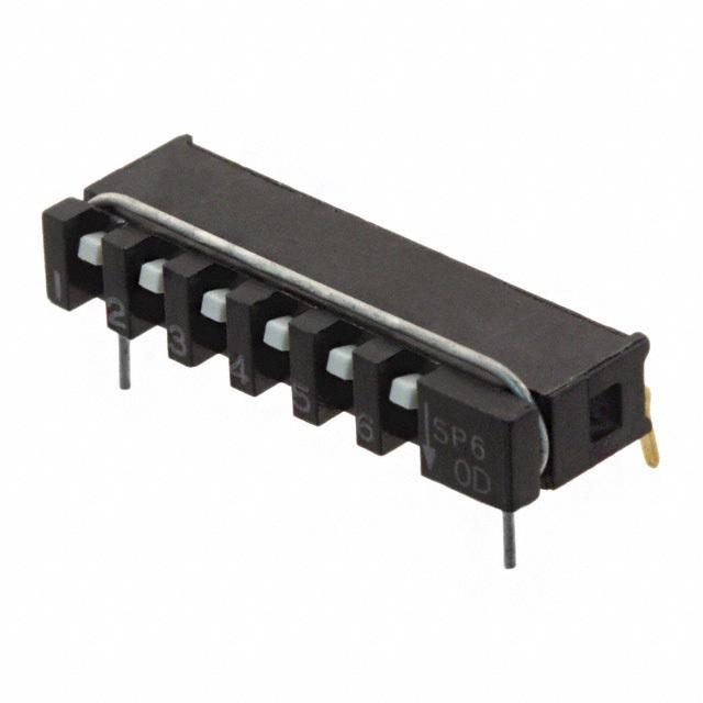 Λεπτομερής περιγραφή Dip Switch SPST 6 Position Through Hole, Right Angle Slide (Standard) Actuator 10mA 20VDC τρέχουσα Αξιολόγηση 10mA