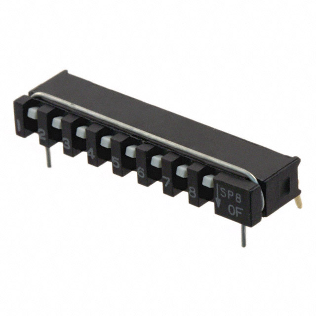 Λεπτομερής περιγραφή Dip Switch SPST 8 Position Through Hole, Right Angle Slide (Standard) Actuator 10mA 20VDC τρέχουσα Αξιολόγηση 10mA