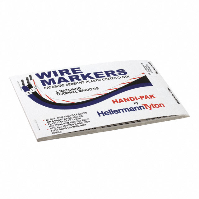 Κατάσταση χωρίς μόλυβδο / κατάσταση RoHS Lead free / RoHS Compliant Λεπτομερής περιγραφή Wire Marker, Book (Perforated) 0.25" W x 1.63" L (6.4mm x 41.3mm) White Vinyl Cloth