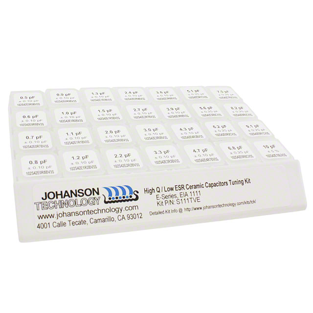 Χαρακτηριστικά High Q, Low Loss, High Voltage Λεπτομερής περιγραφή Ceramic Capacitor Kit 0.5pF ~ 10pF 1000V (1kV) Surface Mount, MLCC 280 Pieces (28 Values - 10 Each)
